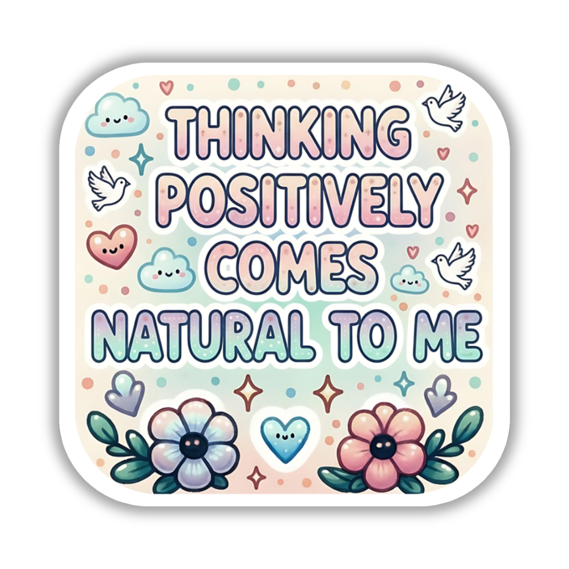 Daily encouragement you can take anywhere. Thinking positively comes natural to me affirmation sticker in durable waterproof vinyl.